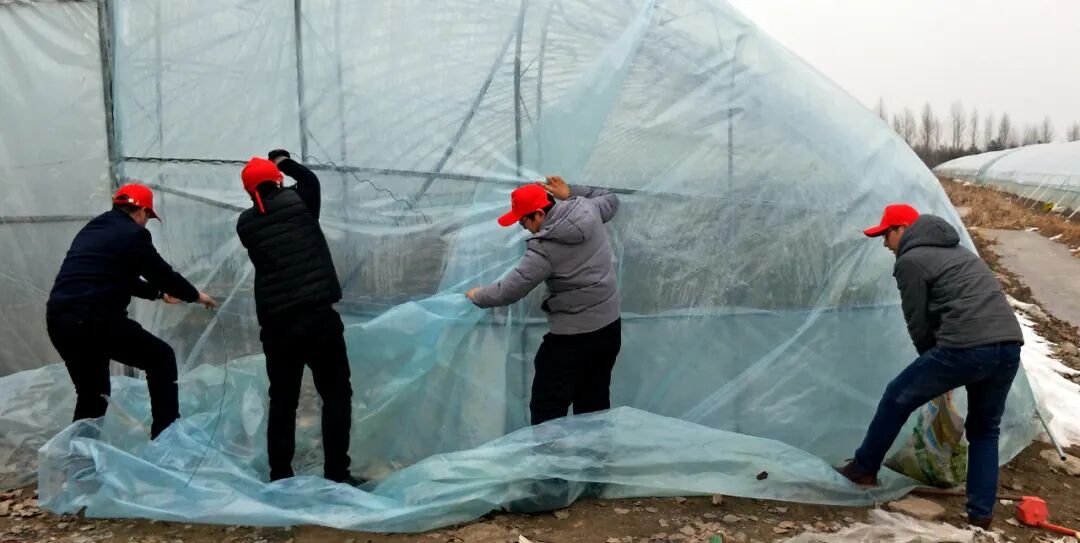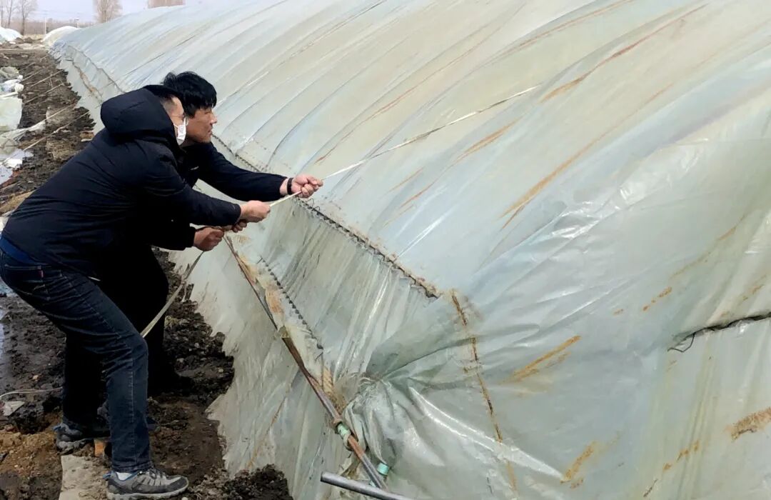 二是深入一线,现场指导巡查帮扶。为了详细掌握种植户防风、防降温工作应对措施开展情况,管理区由党员志愿者和农业技术人员组成的“巡查”小组,深入到育秧大棚基地,对育秧棚进行全程“监控”,仔细检查大棚的压膜土、压膜线等固定棚膜物质的状况。指导种植户对育秧大棚再加固、棚膜再压紧压实,巩固棚体强度,防止因大风天气造成棚膜、棚骨受损。同时,公司机关党员干部下沉成立了“护棚”服务队,主动对接劳动力不足的种植户,帮助其加固大棚,确保大棚度过“危险期”。